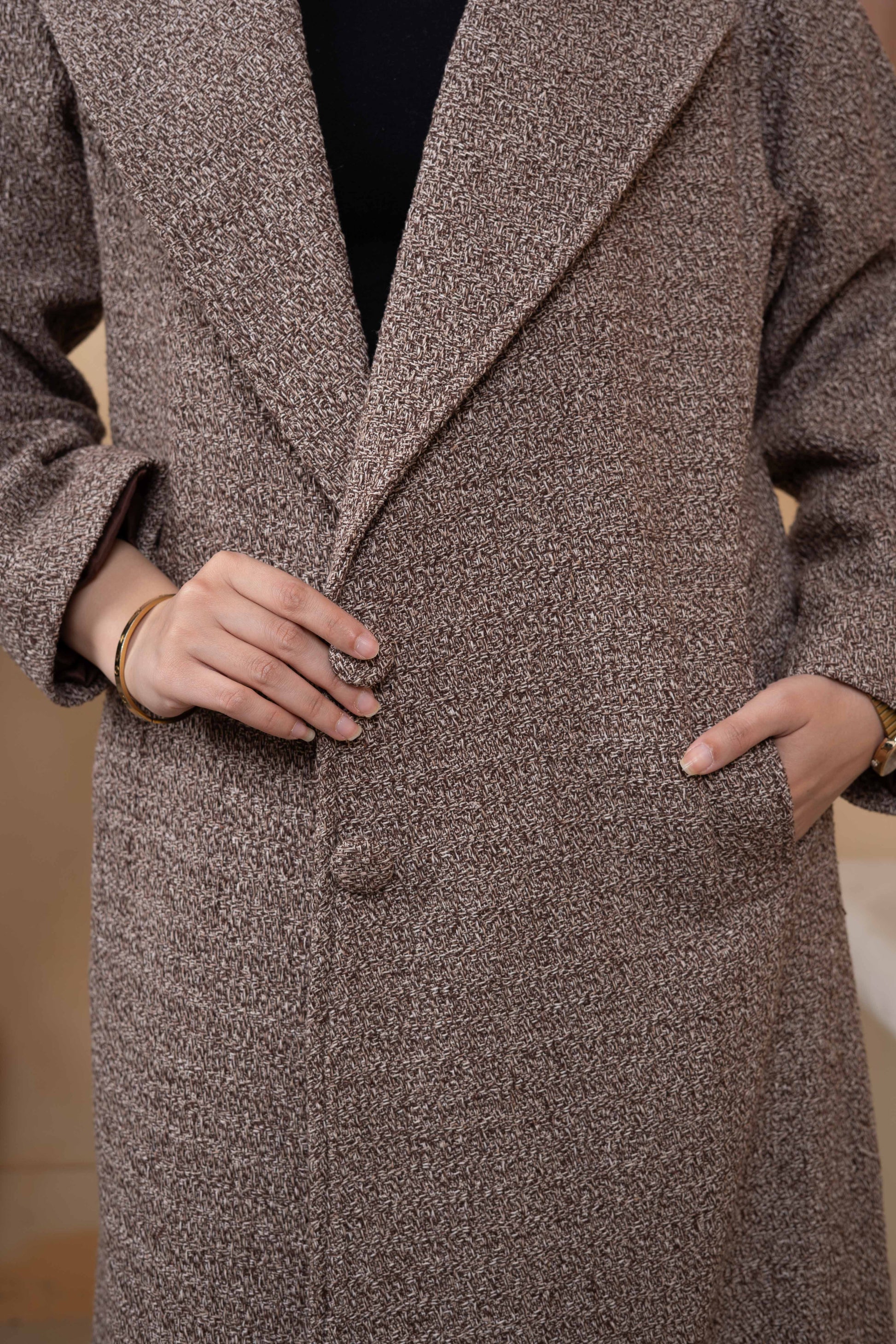 A fully lined wool coat designed to provide warmth with an elegant, refined look.